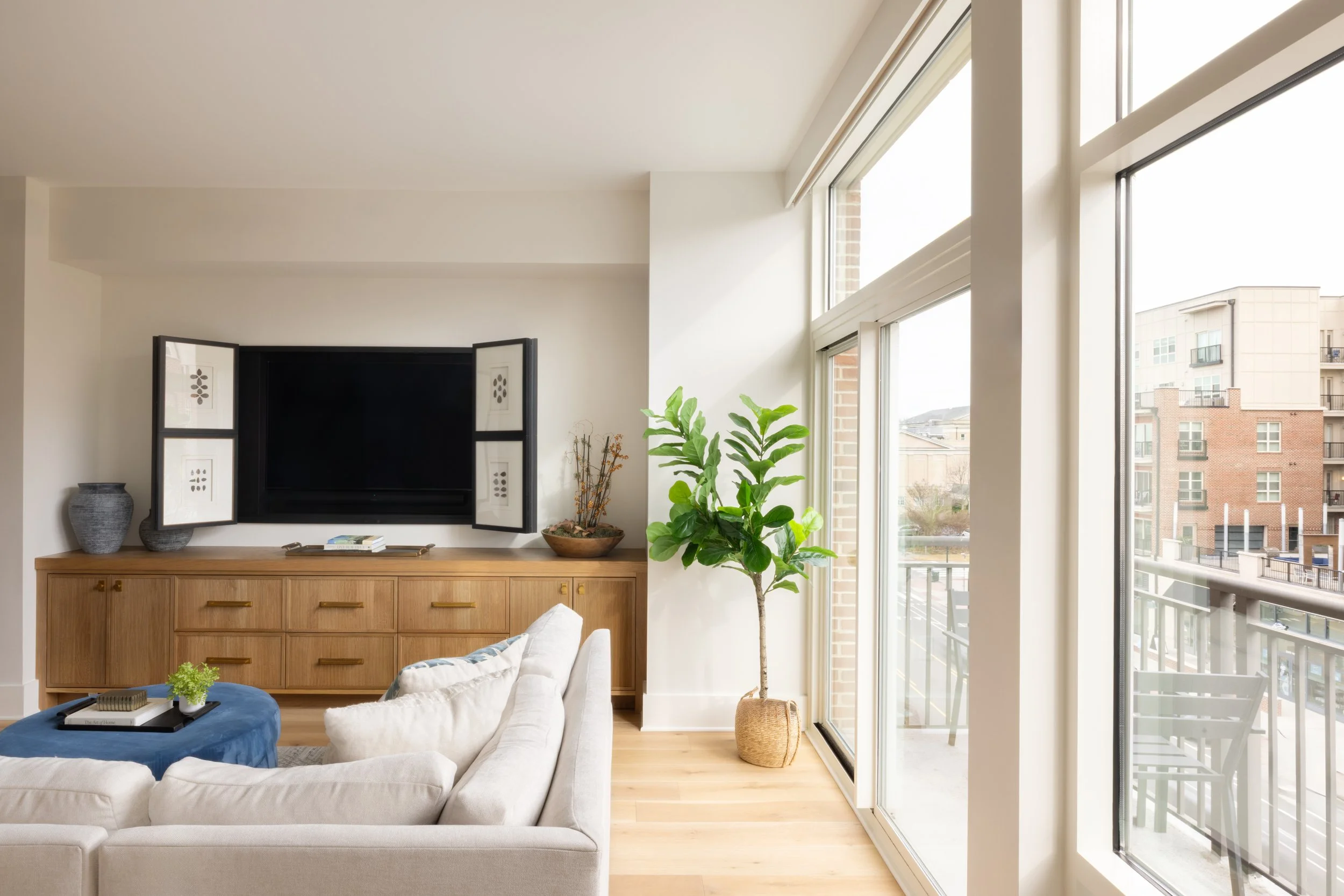 Timeless materials, layered comfort, and natural light create a shared space built for everyday living and meaningful moments.